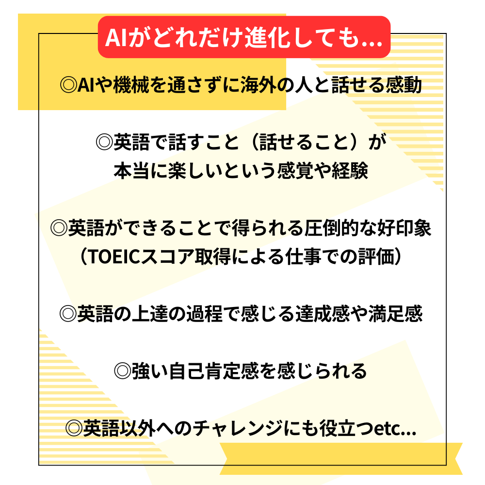 ちなみにAIによって英語自体のあり方が変わっていくのは事実だと思いますが、それでも私が確信していることがあります。それは