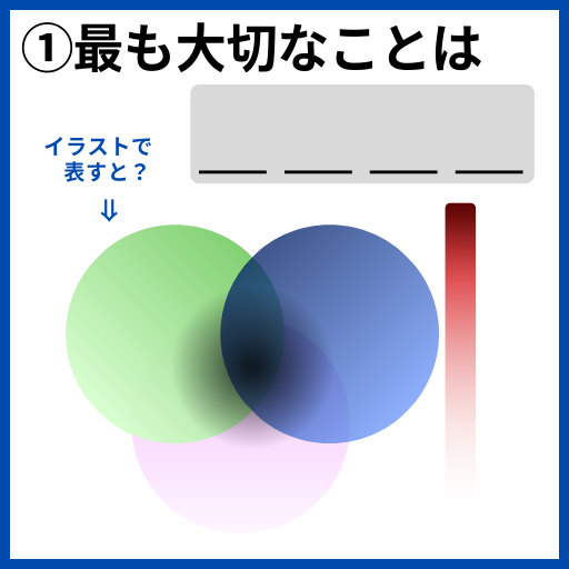 「目的(理由)」だけではなく、それを持続させる「強制力(モチベーション)」も大事な要素です。ちなみに先ほどの「最も大切なことは〇〇」をイラストにするとこうなります。