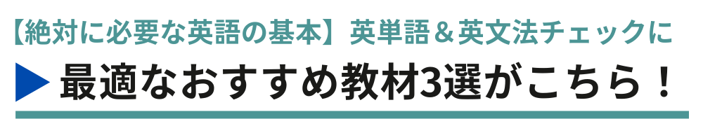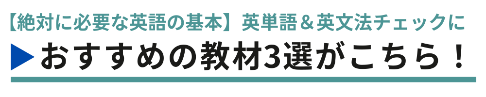 中学校で習う英文法が曖昧な人や忘れてしまっている方は、絶対に基本の単語&文法から学習をはじめるべきです。ここでは「基本の単語&文法教材おすすめ3選」も紹介しますので参考にしてみてください。