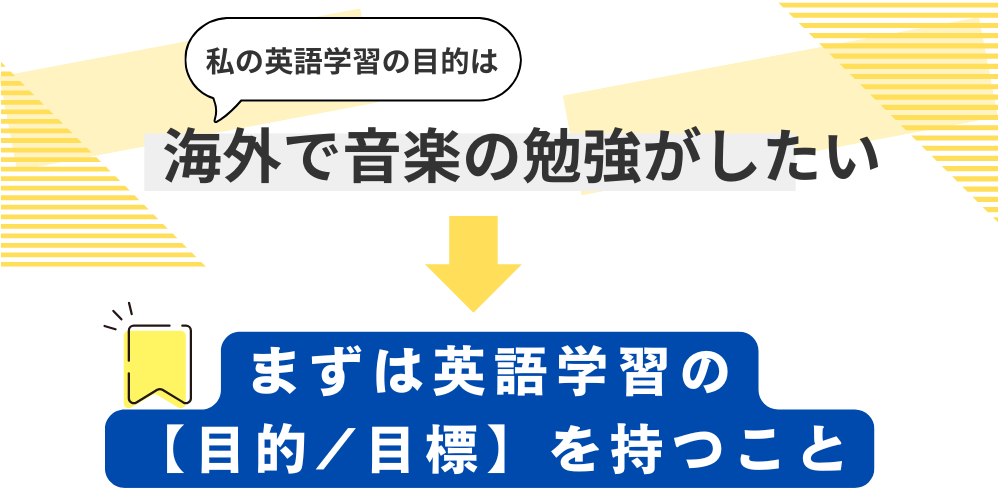 もちろん「海外旅行」や「英語に対する憧れ」が学習の理由でもいいんです。ただその場合、かなり強いモチベーションや強制力がないと挫折してしまう可能性が高いので、ぜひしっかりとした「目標設定」をすることをおすすめします。