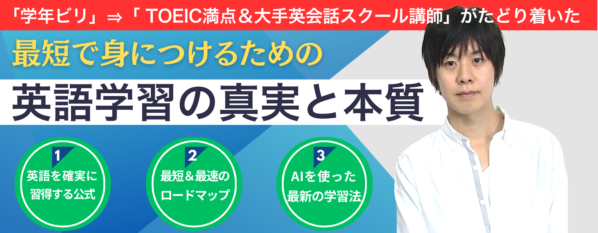 では話を戻して「英語学習の真実と本質」について進めていきましょう。できる限り分かりやすくお伝えするために「3つのポイント」に分けて話していきます。